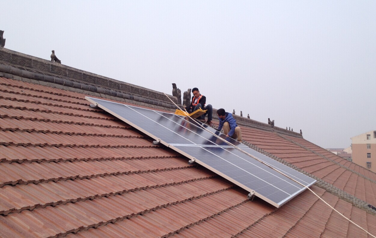 我们可以在该居民家看见,他这套光伏发电设备由8块多晶硅光伏组件、以及一台2千瓦的逆变器组成,发电容量为2千瓦。此系统由光伏板吸收太阳能,转换成直流电,然后通过逆变器再转换成交流电,并入电网。